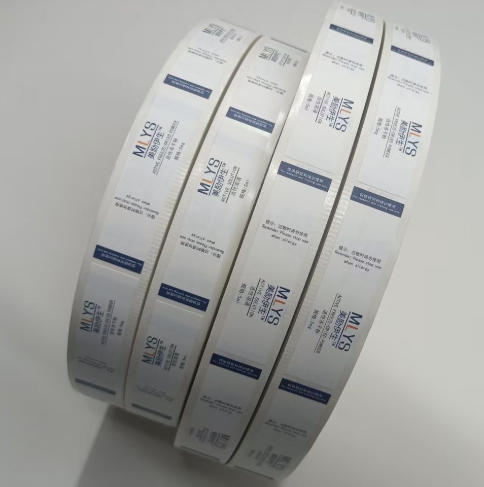 Nombre del producto:Etiqueta en rollo de vinilo PP resistente al agua y a los rayos UV para cosméticos