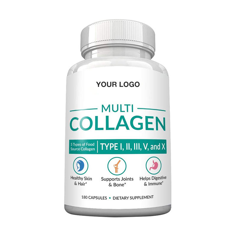 Venta al por mayor Multi Colágeno Suplemento Caps Complex Hidrolizado Nutricional Suplemento 5 Tipos de Fuente de Alimentos Cápsulas de Colágeno