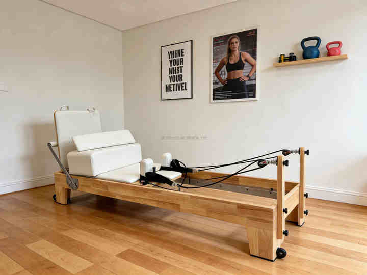 Reformer de Pilates Profesional Alice de Roble, Diseño Silencioso y Antideslizante, Equipo de Yoga para Gimnasio, Multifuncional y Duradero