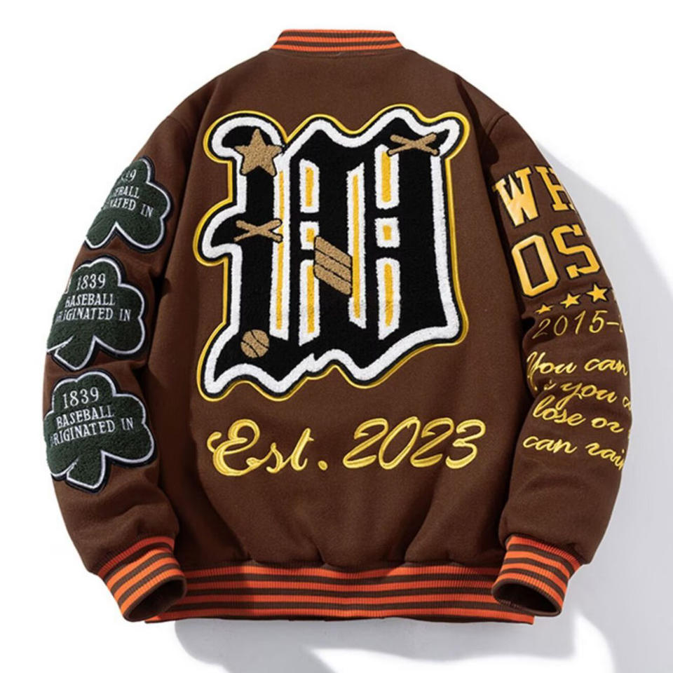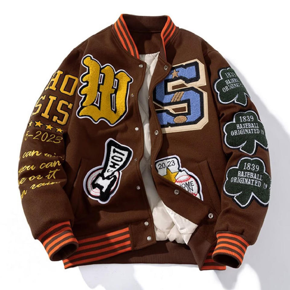 Chaqueta Varsity de Cuero para Hombre, Personalizada por el Fabricante OEM, con Mangas de Cuero, Bordado Chenille, Estilo Universitario