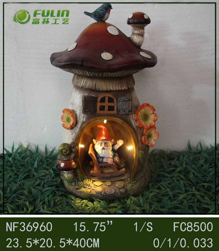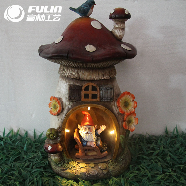 Estatua de Casa de Hongo con Gnomo