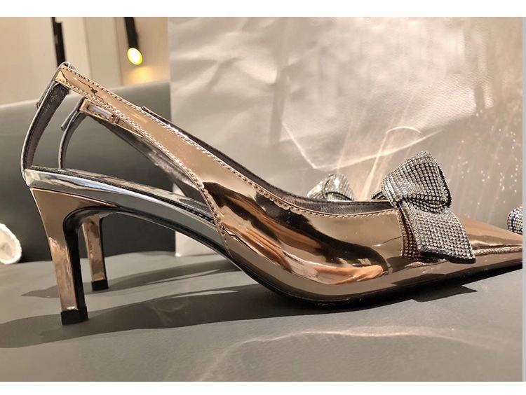 Zapatos de vestir de charol puntiagudos para mujer, calzado de lujo de color plateado y champán con tacón de 6cm, T006