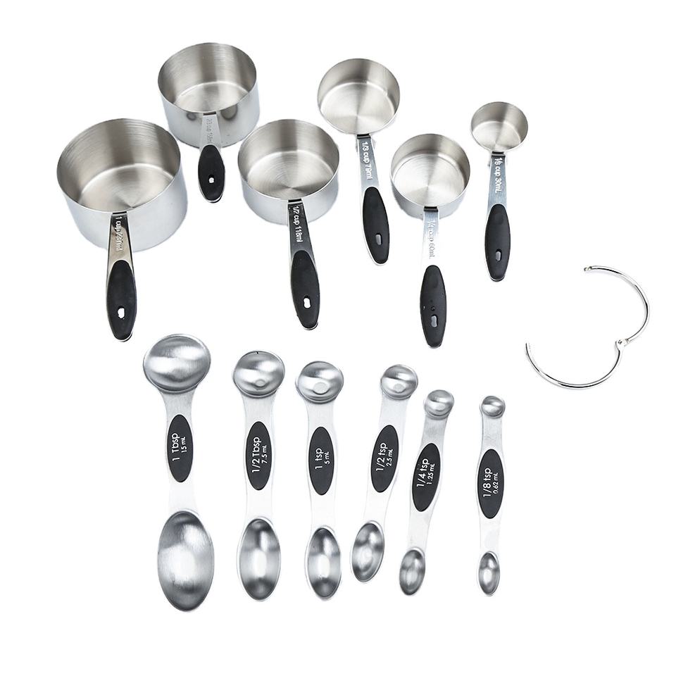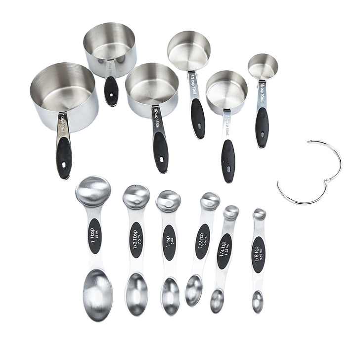 Juego de tazas medidoras y cucharas medidoras magnéticas con 5 tazas y 6 cucharas de acero inoxidable