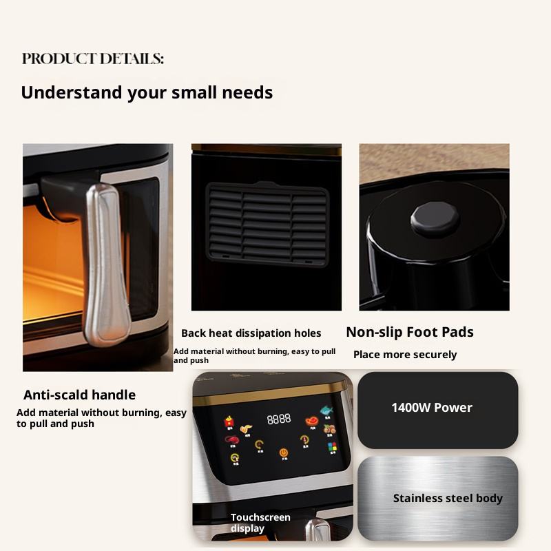 Control de termostato ajustable, Contenedor de aceite desmontable, Superficie de cocción antiadherenteFunción