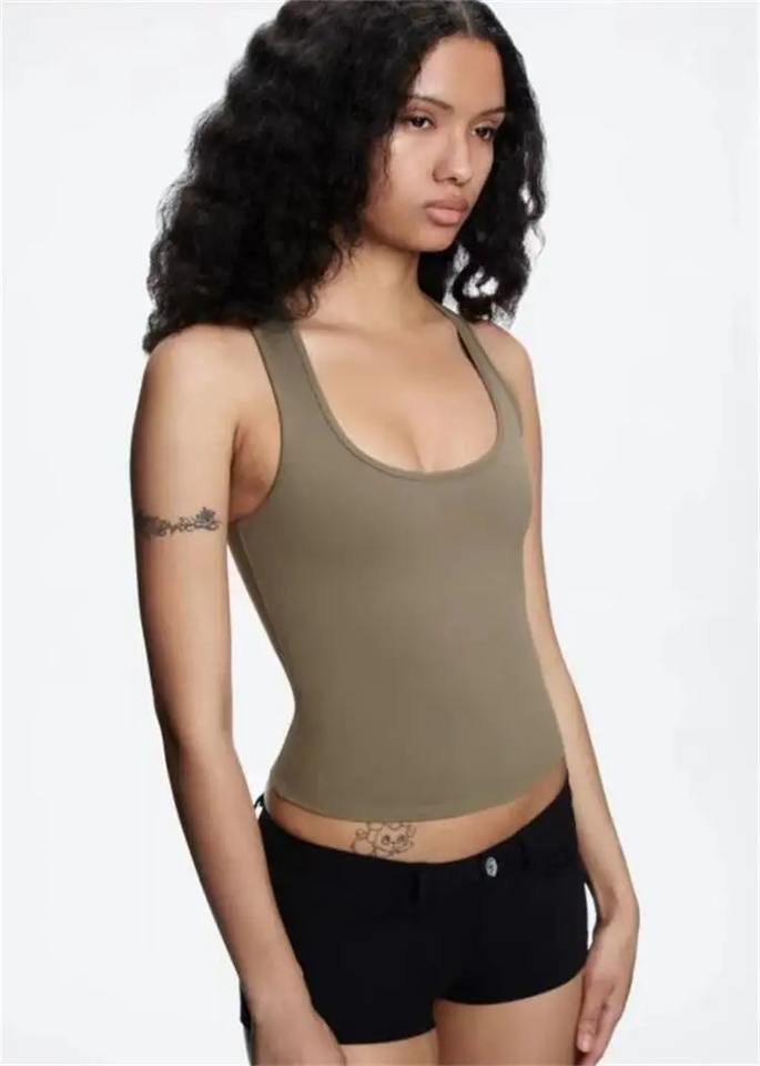 Top de verano de aire con color sólido, polvo blanco y negro, Correa ancha para el hombro, en forma de camiseta sin mangas I, deportes de mujer, uso diario