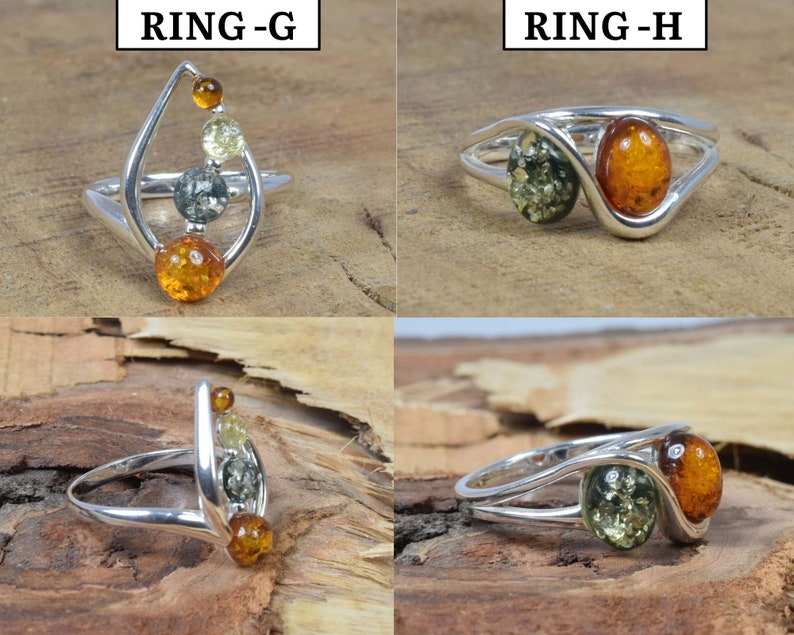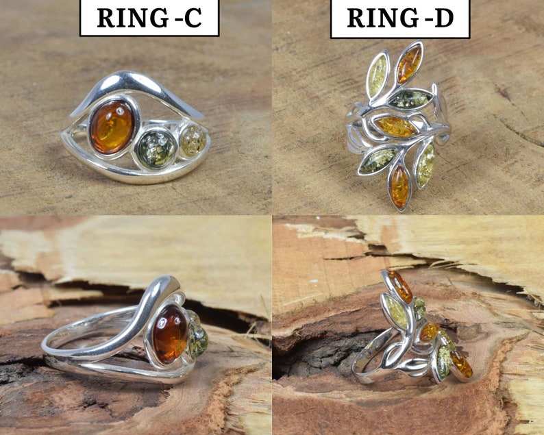 Anillo de ámbar en plata de ley 925 con piedras preciosas naturales multicolores, hecho a mano, regalo para Navidad