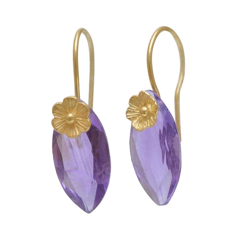 Pendientes de gancho de amatista, joyería fina hecha a mano, venta al por mayor, pendientes de flores de Plata de Ley 925, pedido al por mayor, mayorista DE CASA DE PLATA