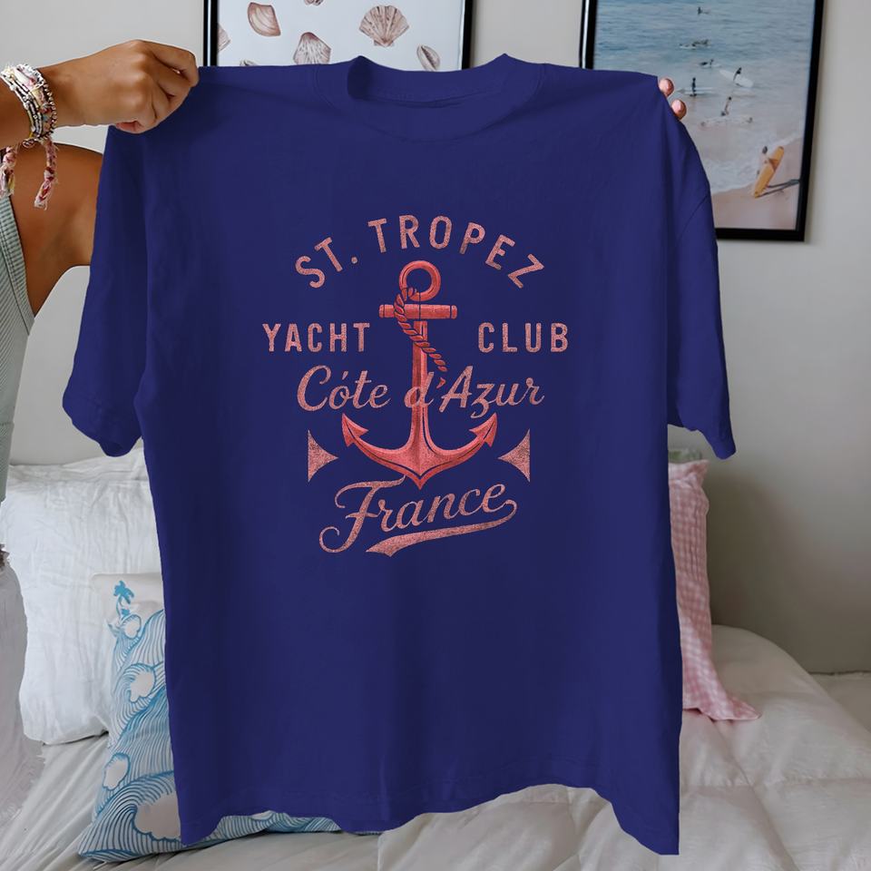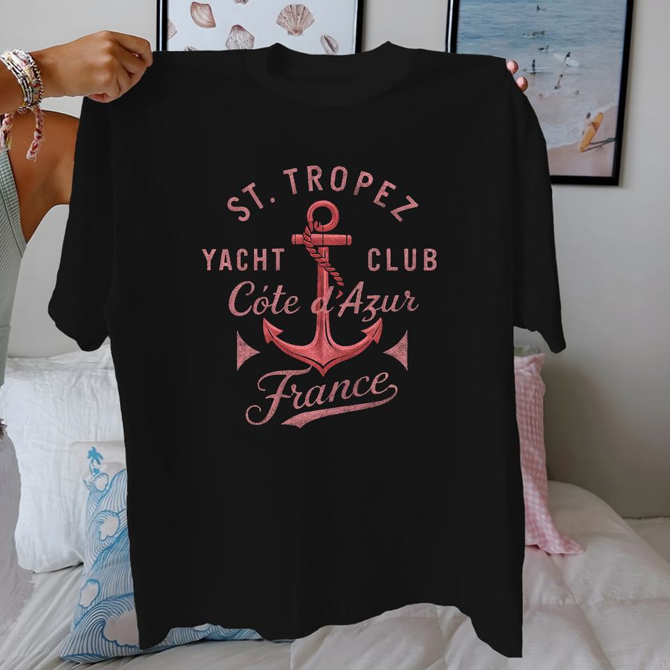 Camiseta de Mujer Anchor ST TROPEZ, Diseño Náutico Vintage, Estampado Informal, Tejido de Punto, 100% Algodón, Ajuste Cómodo