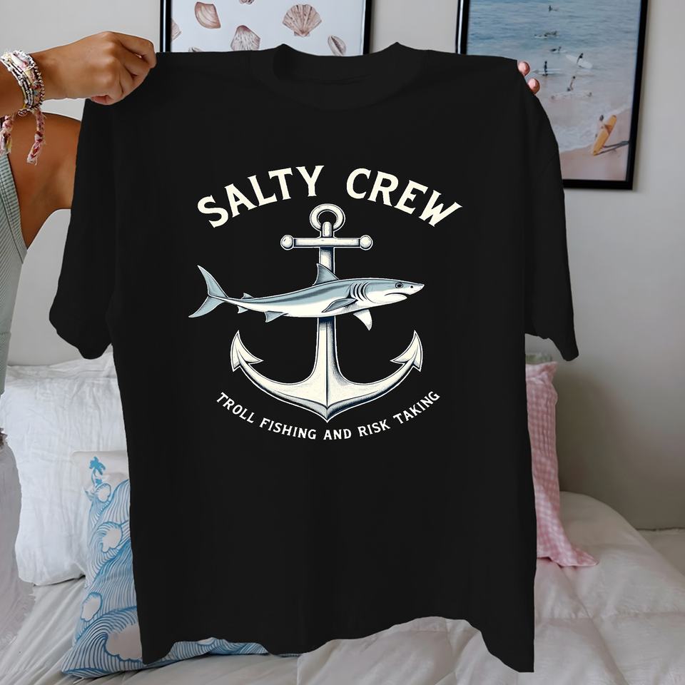 Camiseta cómoda de algodón puro para mujer Anchor Shark SALTY CREW Troll Fishing