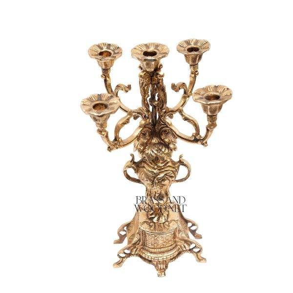 Candelabros de cinco luces de latón antiguo adornado diseño clásico europeo centro de mesa decorativo de lujo para interiores elegantes