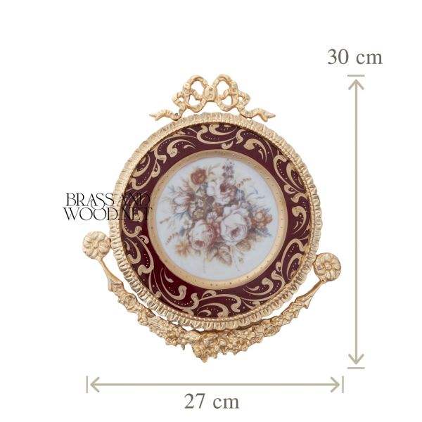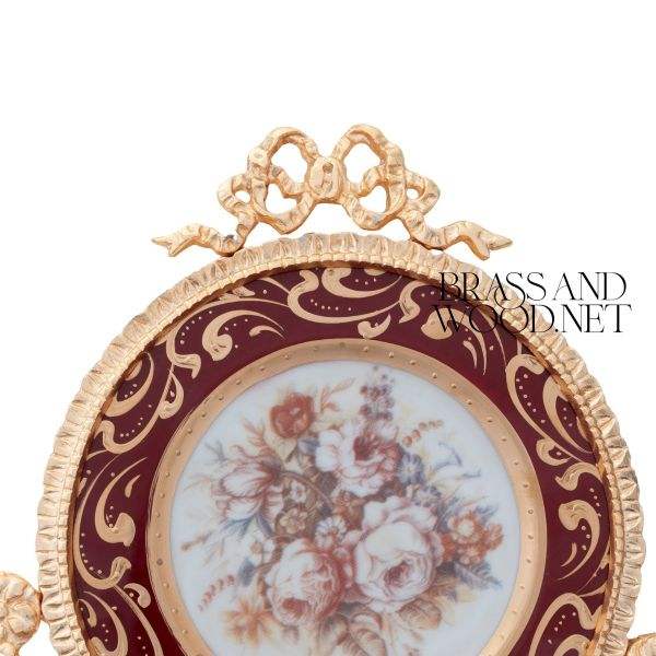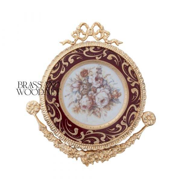 Marco de latón dorado antiguo con placa floral de porcelana decoración clásica hecha a mano vintage para diseño de interiores de lujo para el hogar