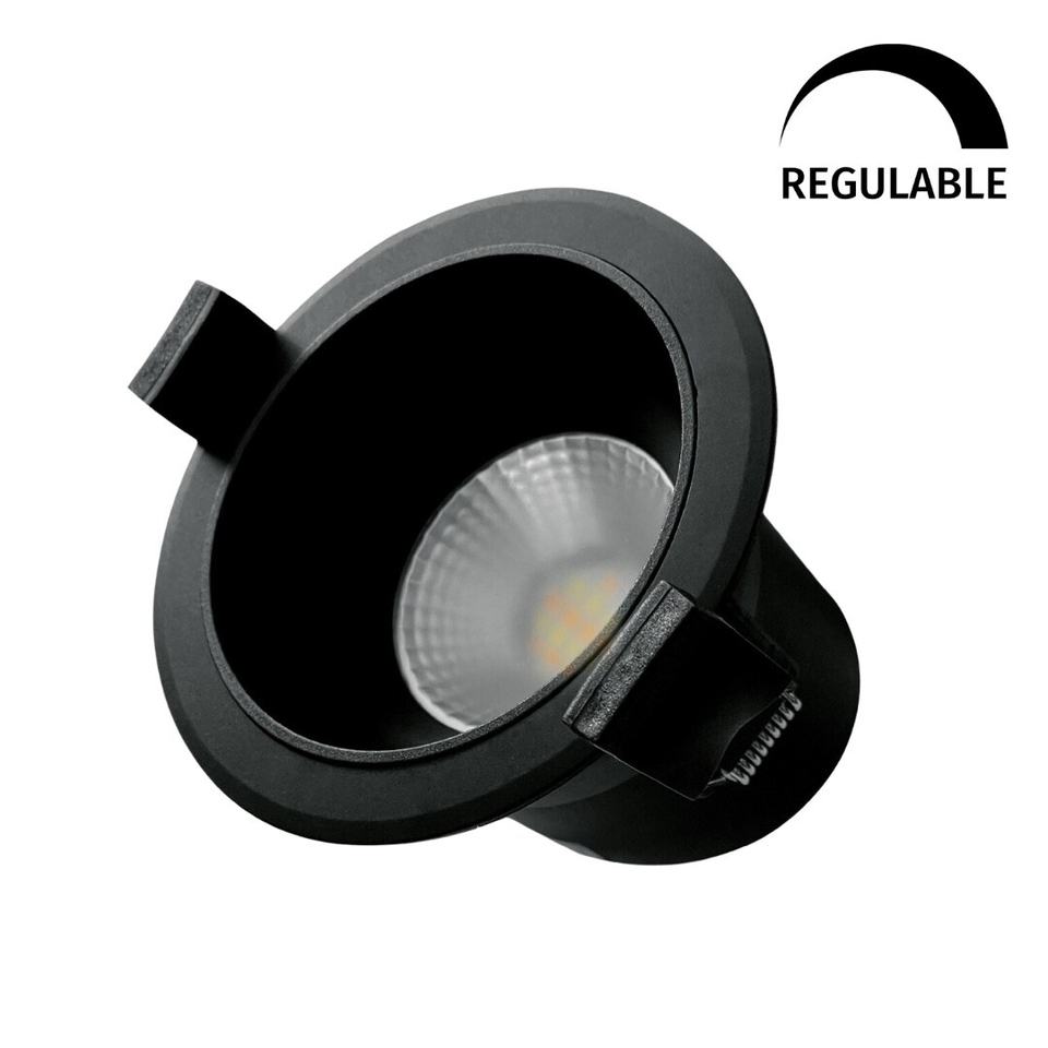 Lámpara LED empotrable de 7W con CCT, antideslumbrante, color negro, ideal para iluminación ambiental y de acento.