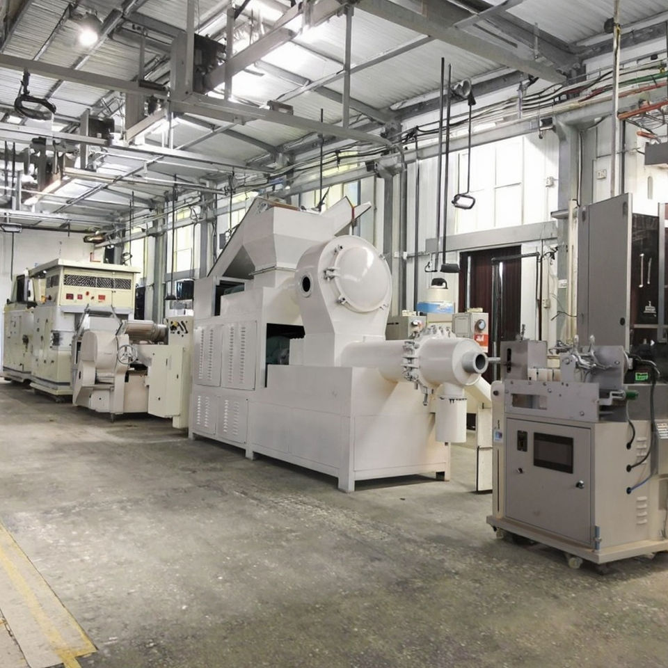 Máquina automática mini para la producción a pequeña escala de jabón de proceso en frío con aceite de oliva, con extrusora, cortadora y máquina de corte tipo bar plodder.