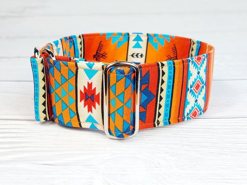 Collar de perro azteca suroeste galgo Boy, martingala o hebilla, collar de whippet/Tucson Stripes naranja