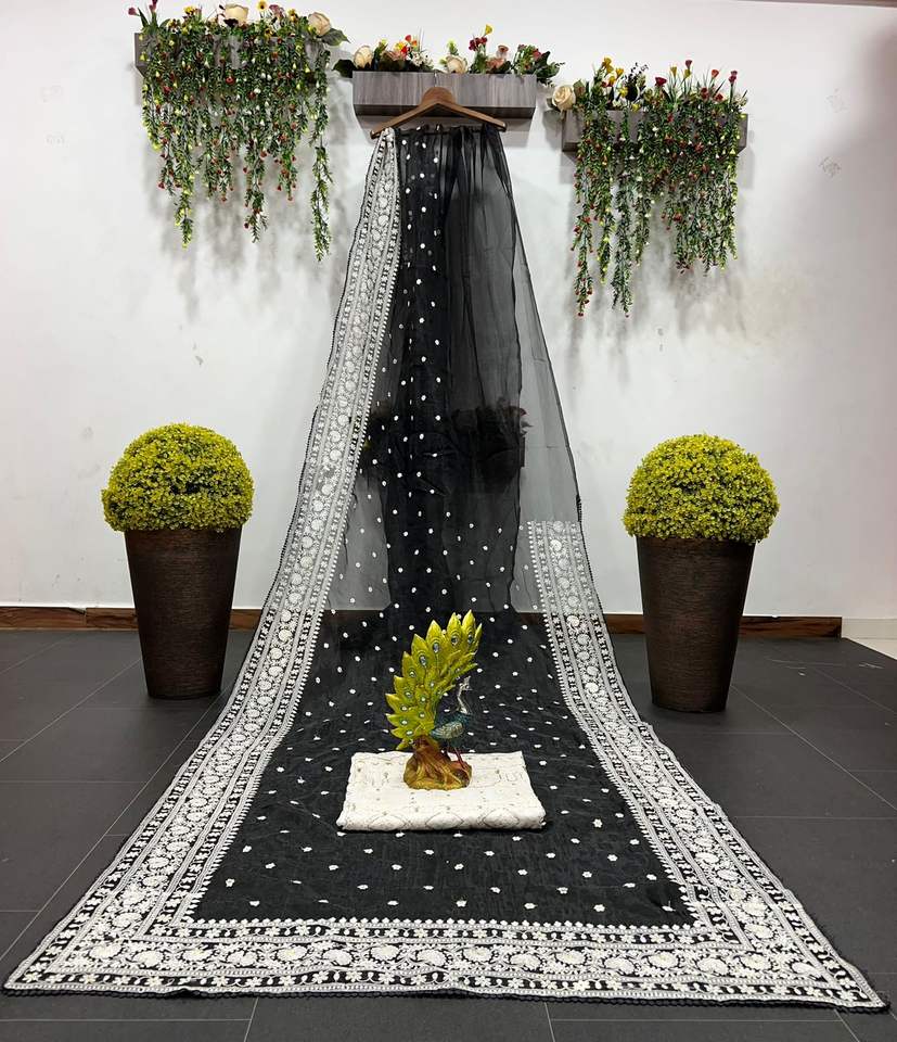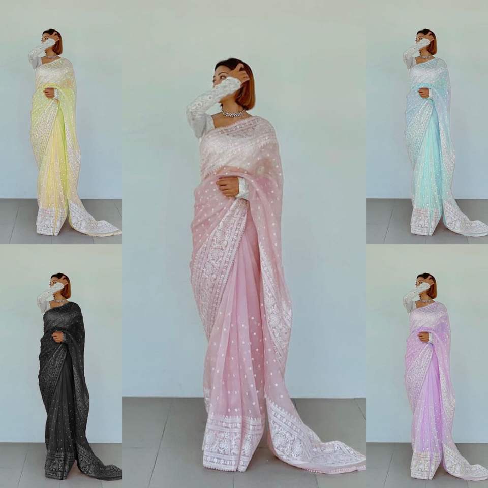 Trabajo de Saree:Thred trabajo con encaje Fancy