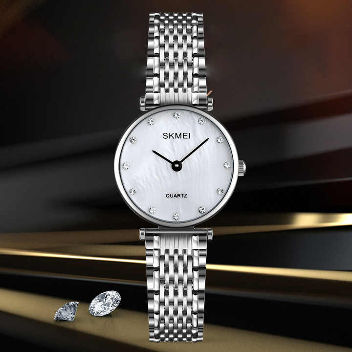 Reloj de negocios con esfera de diamante ostentoso, banda de acero inoxidable, compatible con diseño personalizado y logotipo, reloj de cuarzo para mujer