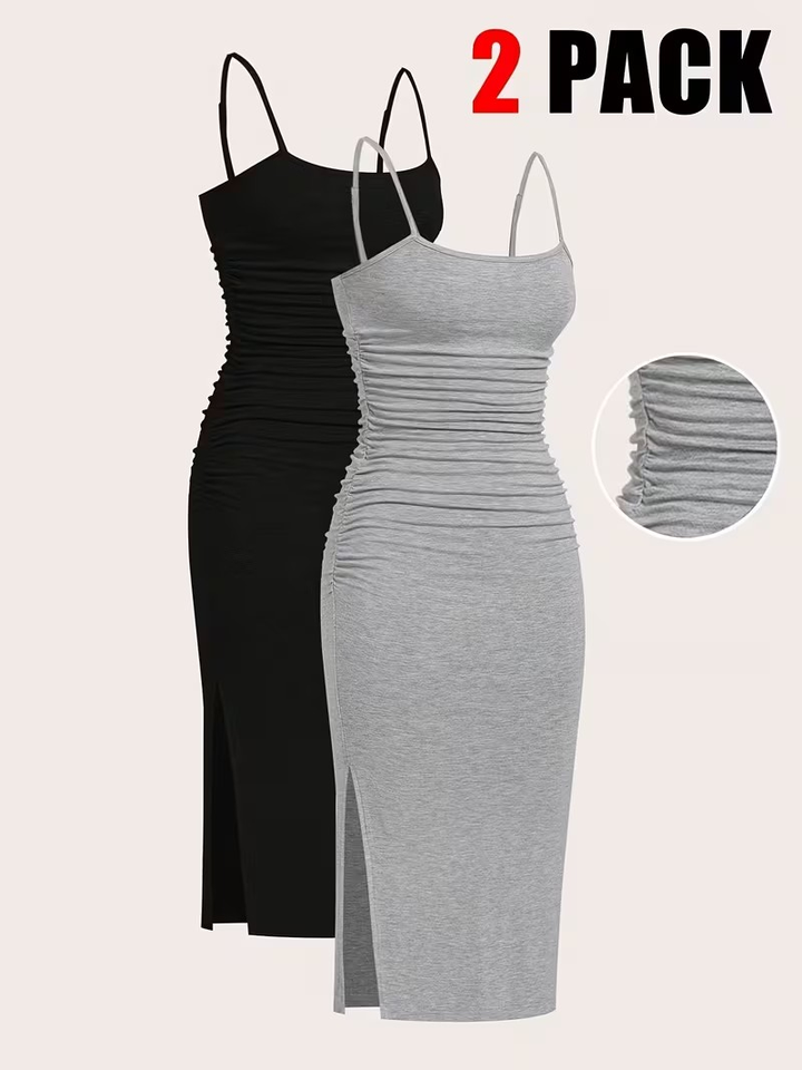 Minivestido Ceñido con Estampado de Leopardo, Cuello Redondo Acanalado, Sin Mangas, Color Sólido, Ropa de Mujer para Primavera/Verano, Ecológico, Hecho en Bangladesh