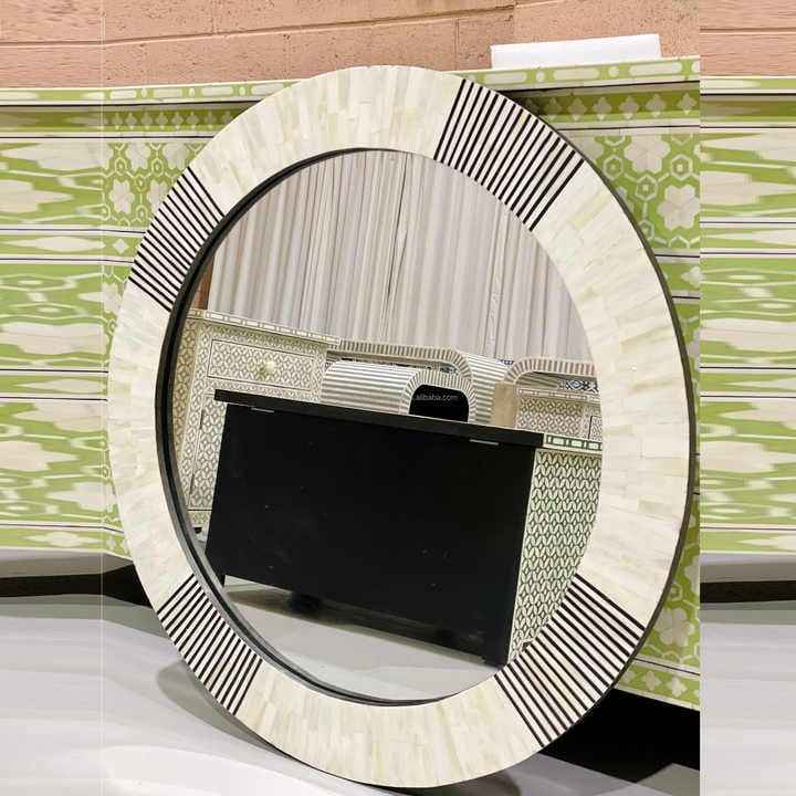 Espejo redondo con incrustaciones de hueso Capiz Shell incrustaciones espejo de pared al por mayor