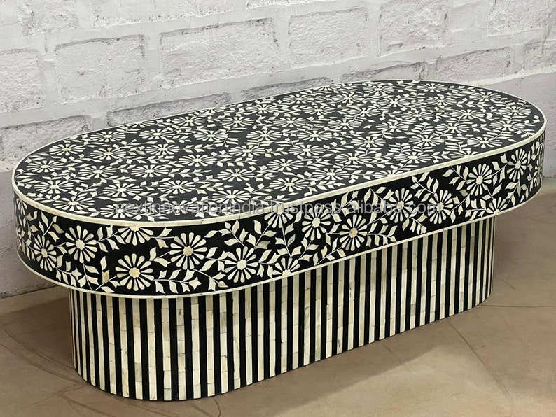Declaración de incrustaciones de hueso Mesas de centro con incrustaciones de hueso únicas para interiores atemporales