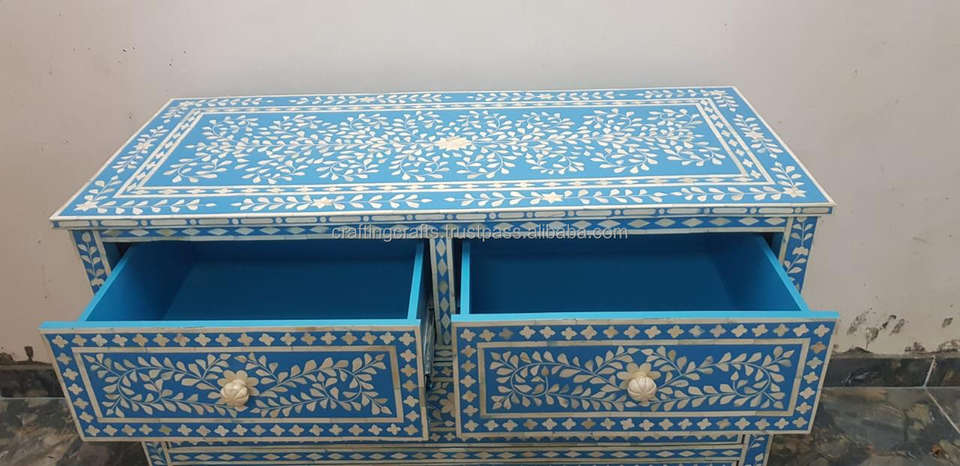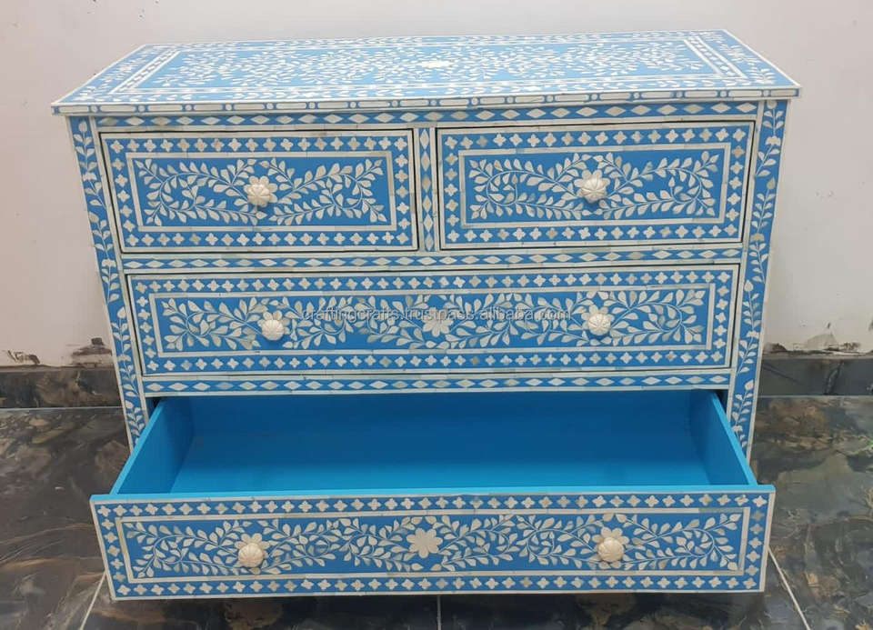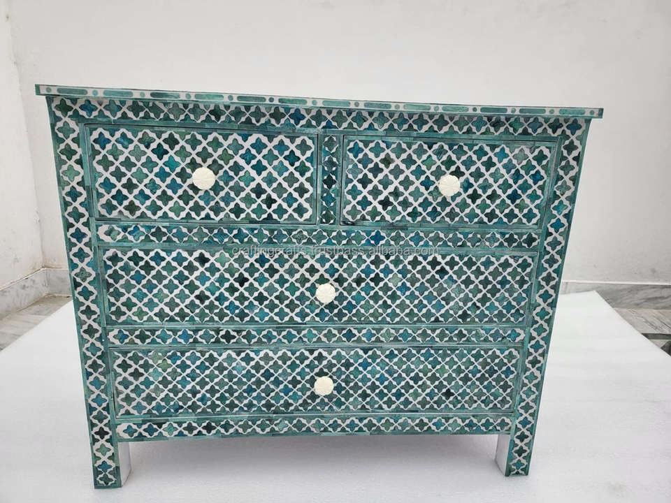 Cajones de Almacenamiento de Lujo para Dormitorio con Incrustaciones de Nácar, Cajones de Muebles Clásicos Hechos a Mano con Incrustaciones de Nácar