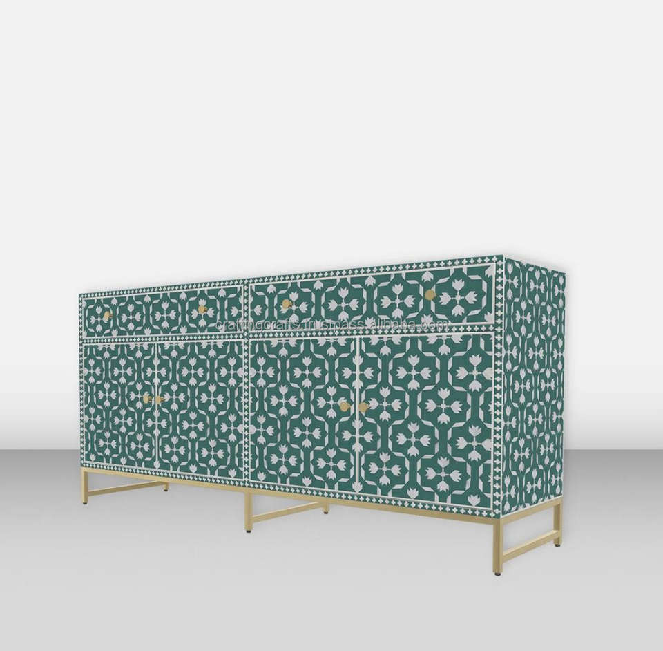 Consola con incrustaciones de hueso Mesa de aparador con incrustaciones de hueso hecha a mano Artesanía atemporal de la India Mesa de aparador con incrustaciones de hueso al por mayor