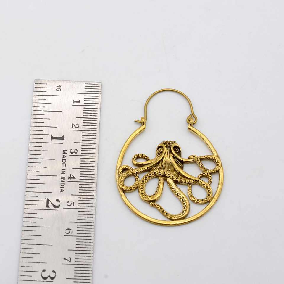 Pendiente ligero de pulpo de latón, con un diseño de inspiración acuática, perfecto para agregar un toque único con su Krake dorado