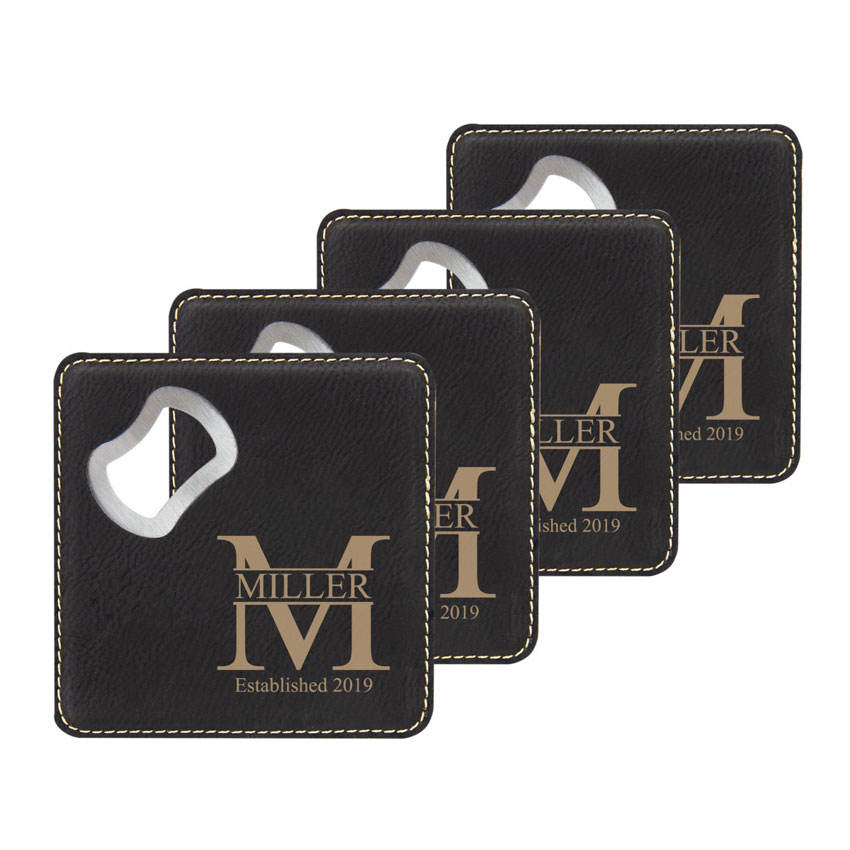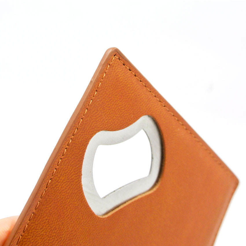 Nombre del producto:Promocional en blanco de PU de imitación de cuero posavasos abrebotellas