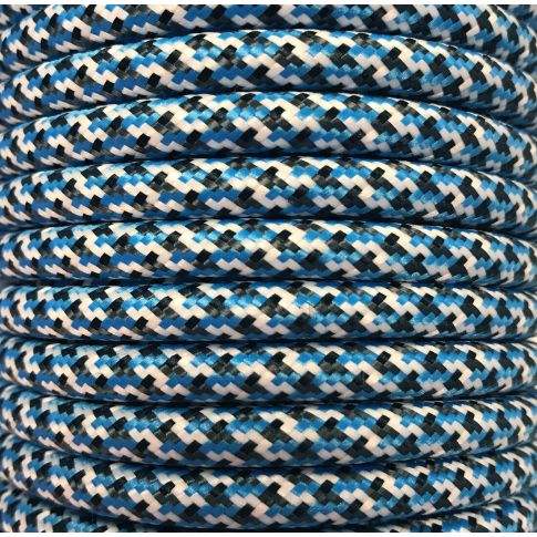 Cable textil azul oscuro de 15m con diseño ado, ideal para decoración e iluminación de espacios.