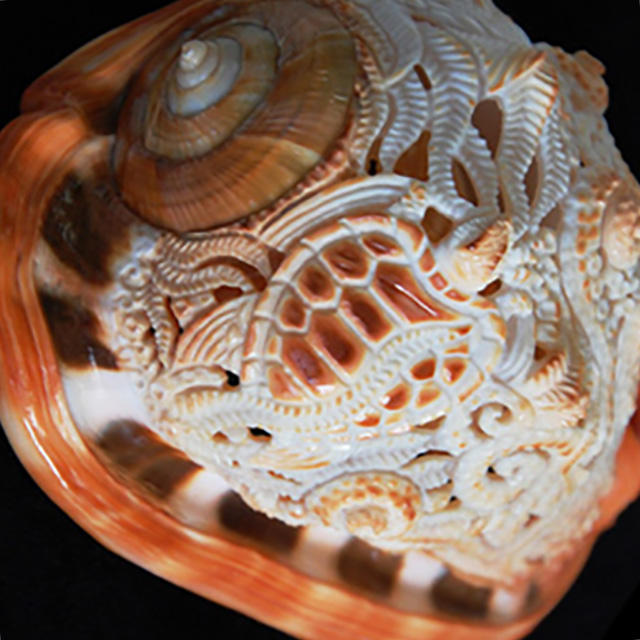 Arte tallado en concha Melo SEASHELL JEWELRY 12 cm Arte tallado con motivos florales religiosos de animales Marfil pulido elegante