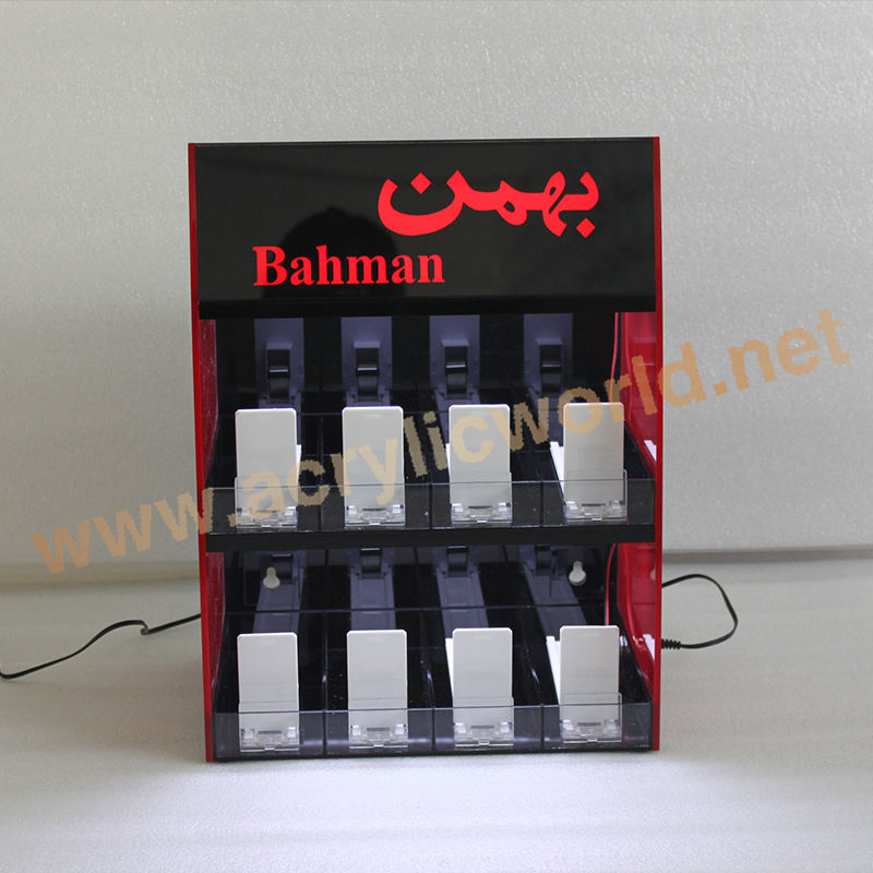 Soporte de exhibición para cigarrillos, estante acrílico iluminado con luz LED para publicidad de tabaco