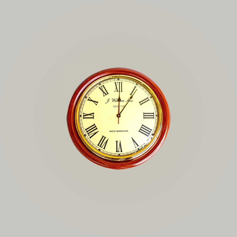 Reloj de diseño clásico con estilo para decoración de oficina, marco de latón, pared náutica, forma redonda, pulido de espejo, acabado dorado