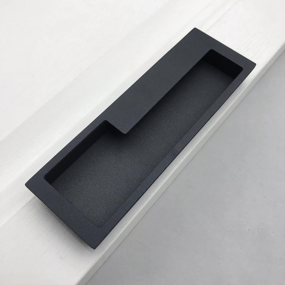 Manija de puerta corredera oculta con manija negra incorporada, manija incrustada ranurada y manija de puerta de gabinete invisible dorada