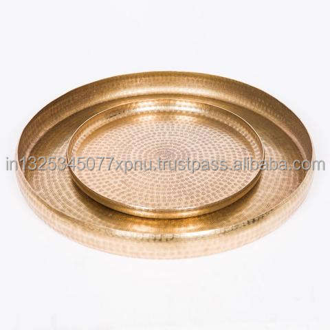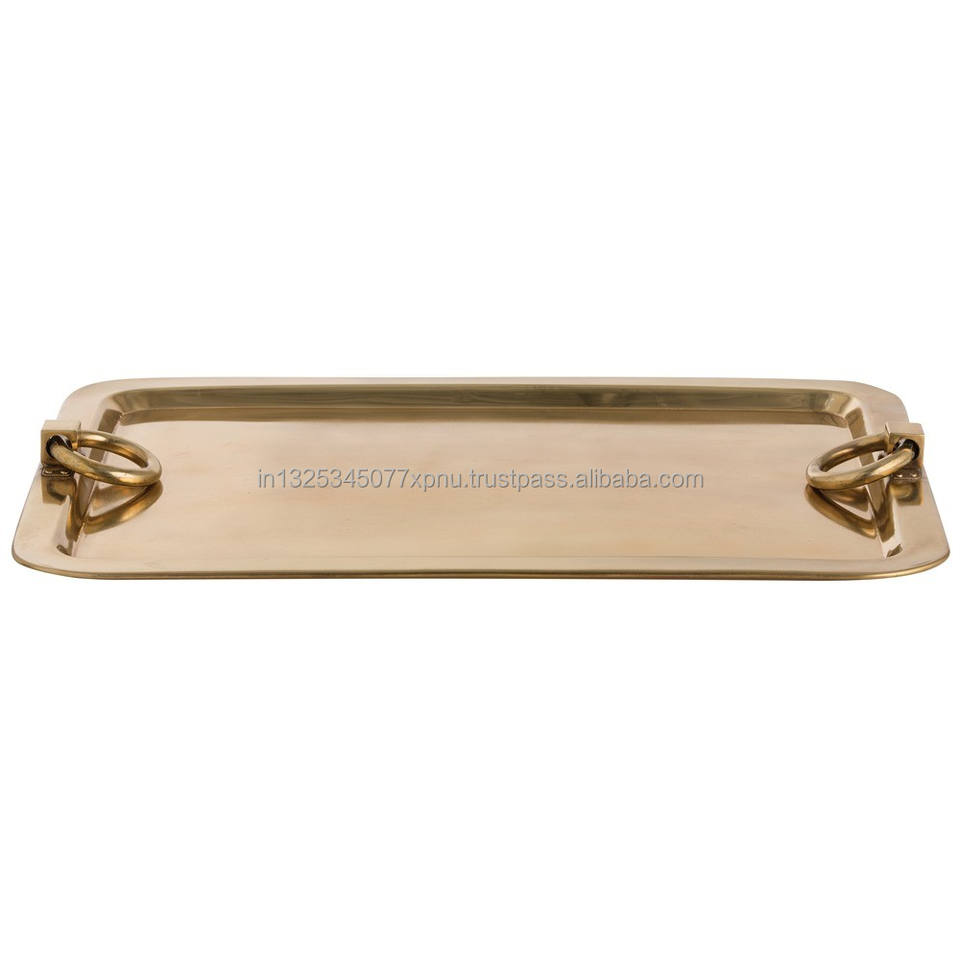 Bandeja de cobre con mango de color dorado Bandeja para servir alimentos y decoración del hogar