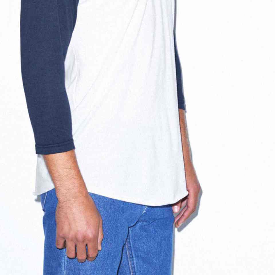 Camiseta raglán hecha a medida tela de algodón Premium camiseta de béisbol atlética elegante manga de contraste diseño unisex para propietarios de marcas