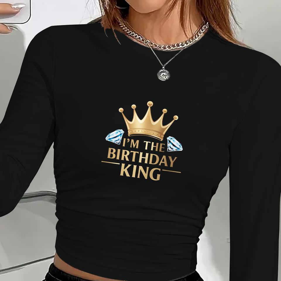 Corona diamantes I M EL REY DE CUMPLEAÑOS moda mujer camisa de manga larga