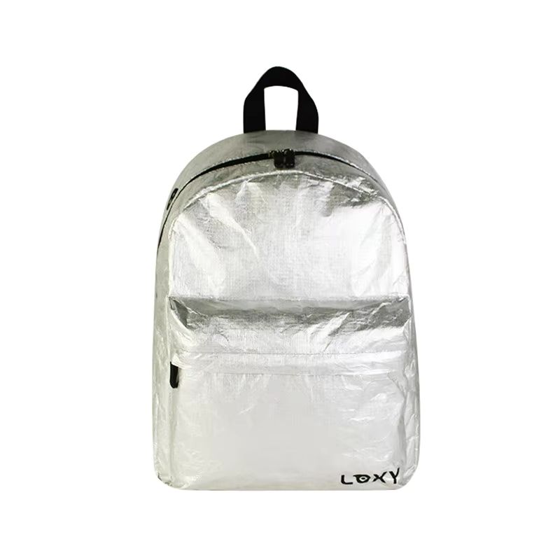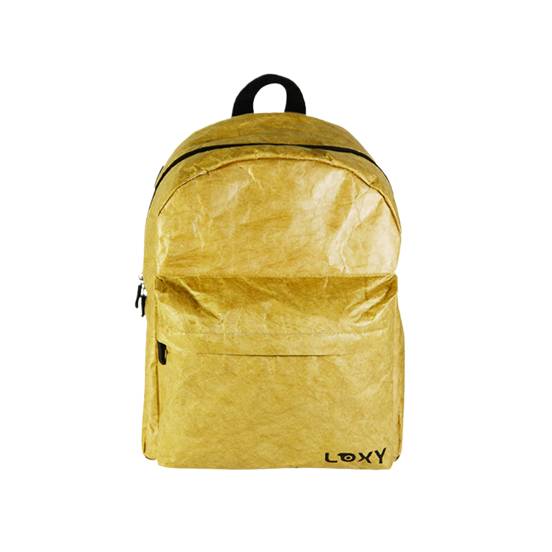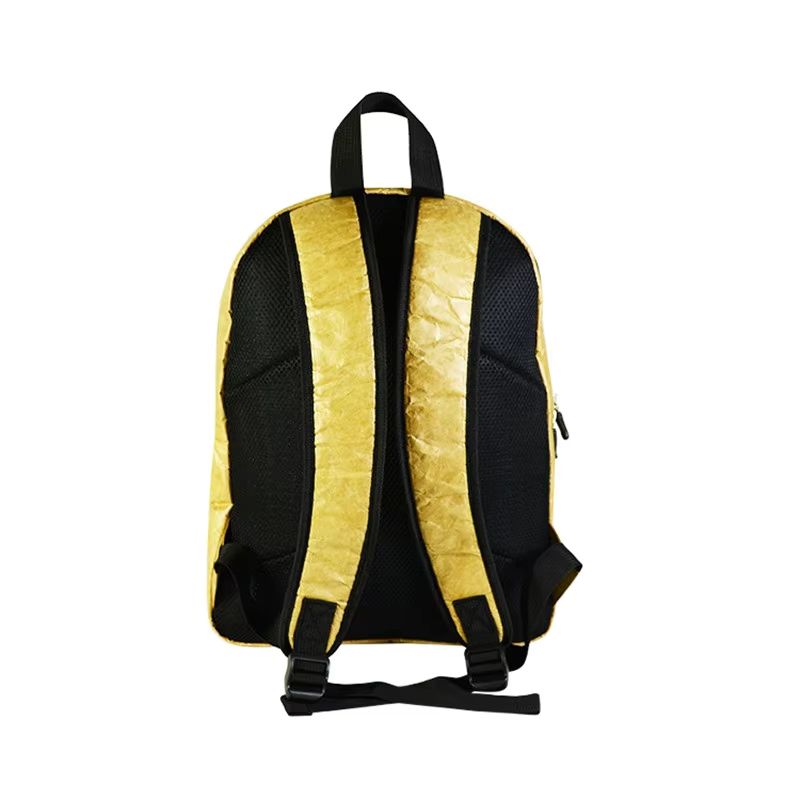 Mochila ecológica impermeable personalizada, resistente y a prueba de desgarros, hecha de papel reciclado reforzado.