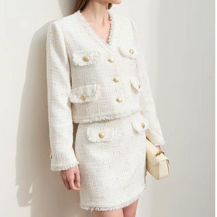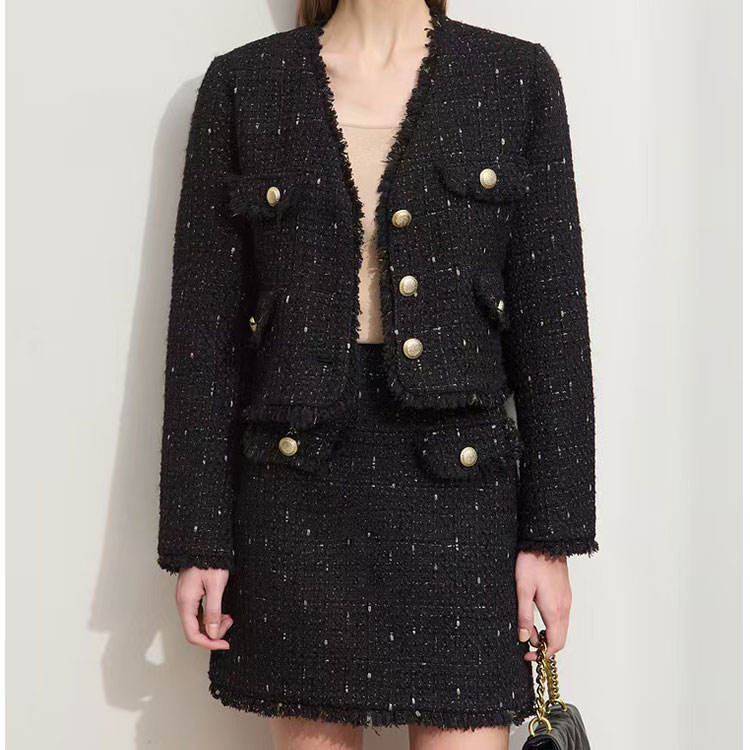 Conjunto de minifalda y chaqueta de estilo europeo para mujer, traje con botones de dos piezas de tweed elegante personalizado