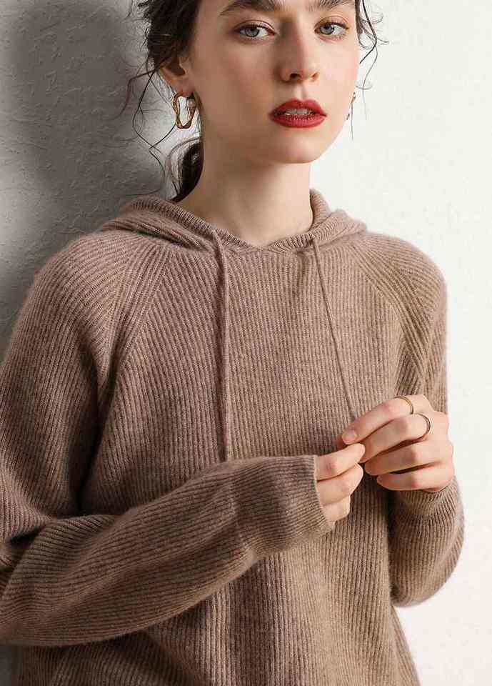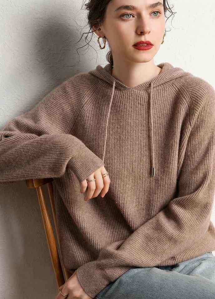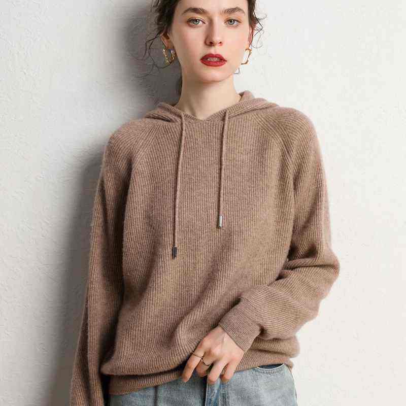 Sudadera con Capucha Informal de Punto Acanalado de Lana de Cachemira Personalizada para Hombre