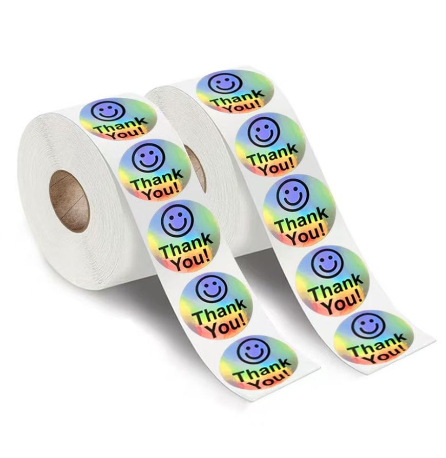 Etiqueta de sello de holograma personalizada rollo de pegatinas de agradecimiento para pequeñas empresas
