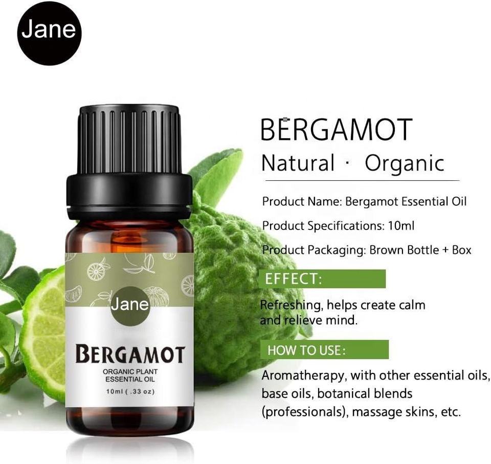 Aceite Esencial de Bergamota 100% Puro, Natural y Orgánico para Difusor, Masajes, Cuidado de la Piel, Jabón, Velas y Perfumes, con Logotipo Personalizado, 10 ml, 30 ml, 100 ml