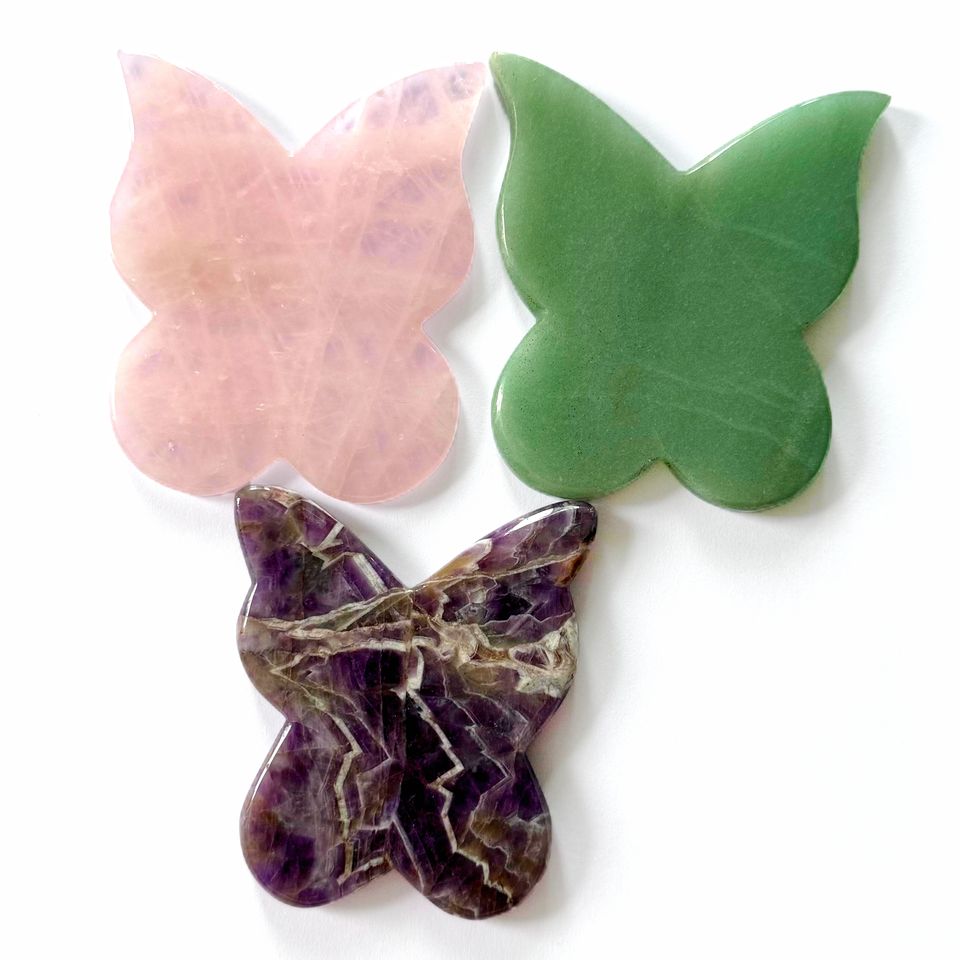 Logotipo personalizado azul claro cuidado de la cara masajeador mariposa ópalo gua sha