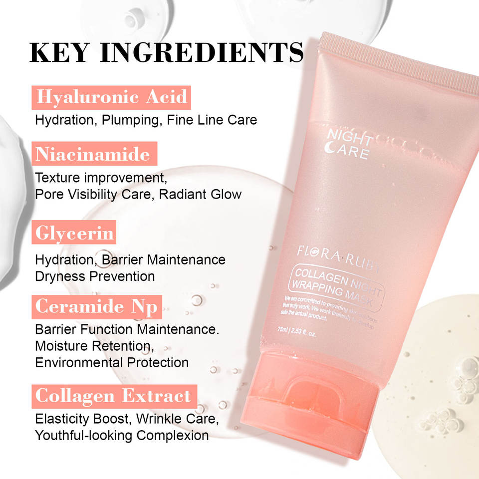 colágeno, Ácido hialurónico, Glicerina, niacinamida, Vitamina E, Oligopéptidos, ceramidaIngrediente Principal
