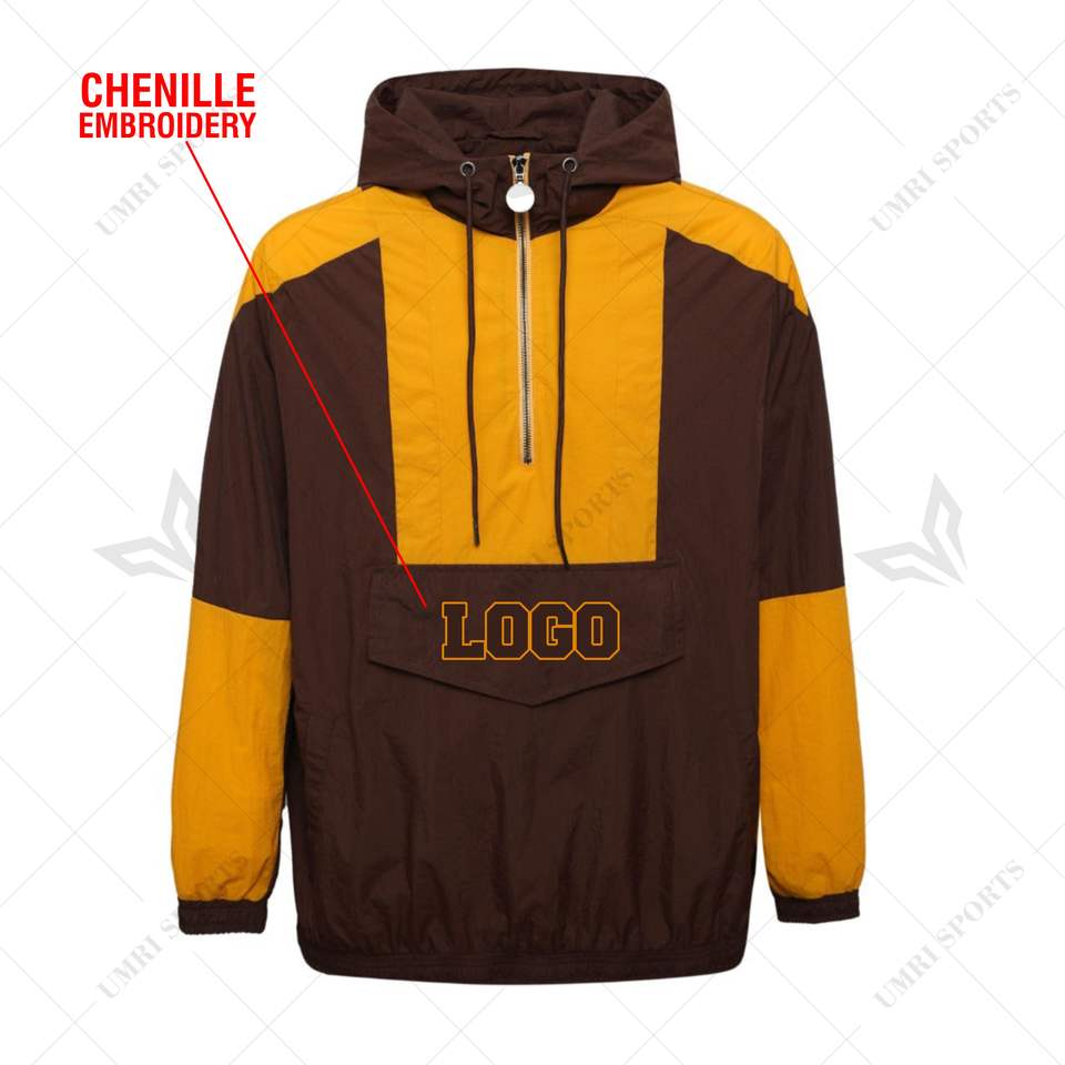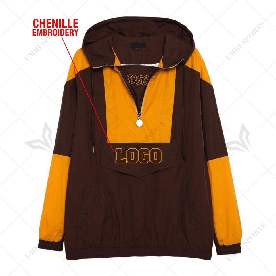 Chaqueta cortavientos con media cremallera Iota Phi Beta personalizada para senderismo, chaqueta impermeable para la lluvia, cortavientos griego, marrón y dorado