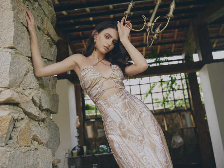 Vestido SOLARA con Recortes _ Vestido Sexy con Diseño Paisley, Estilo Resort y Playa, OEM ODM