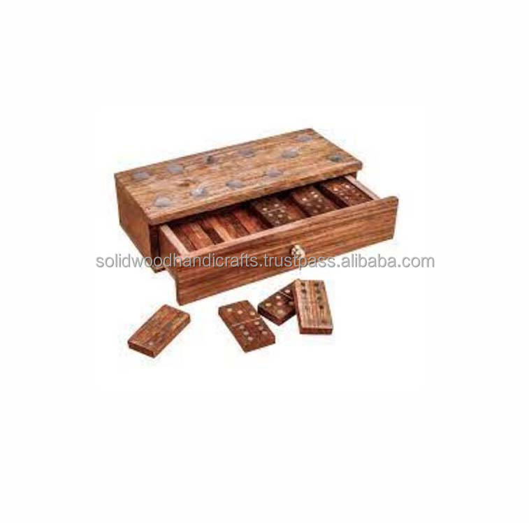 Juego de dominó personalizado con incrustaciones de latón regalo del Día del Padre juego de dominó de madera caja de dominó