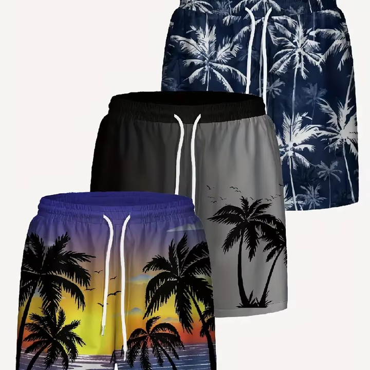Dropshipping pantalones cortos hawaianos con cordón para hombre con estampados de palmeras elegantes para playa de verano, piscina y vacaciones