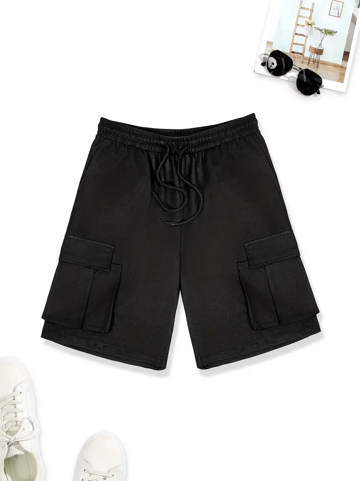 Dropshipping Pantalones cortos de trabajo de color sólido de ajuste relajado, no elásticos, con múltiples bolsillos, informales, holgados