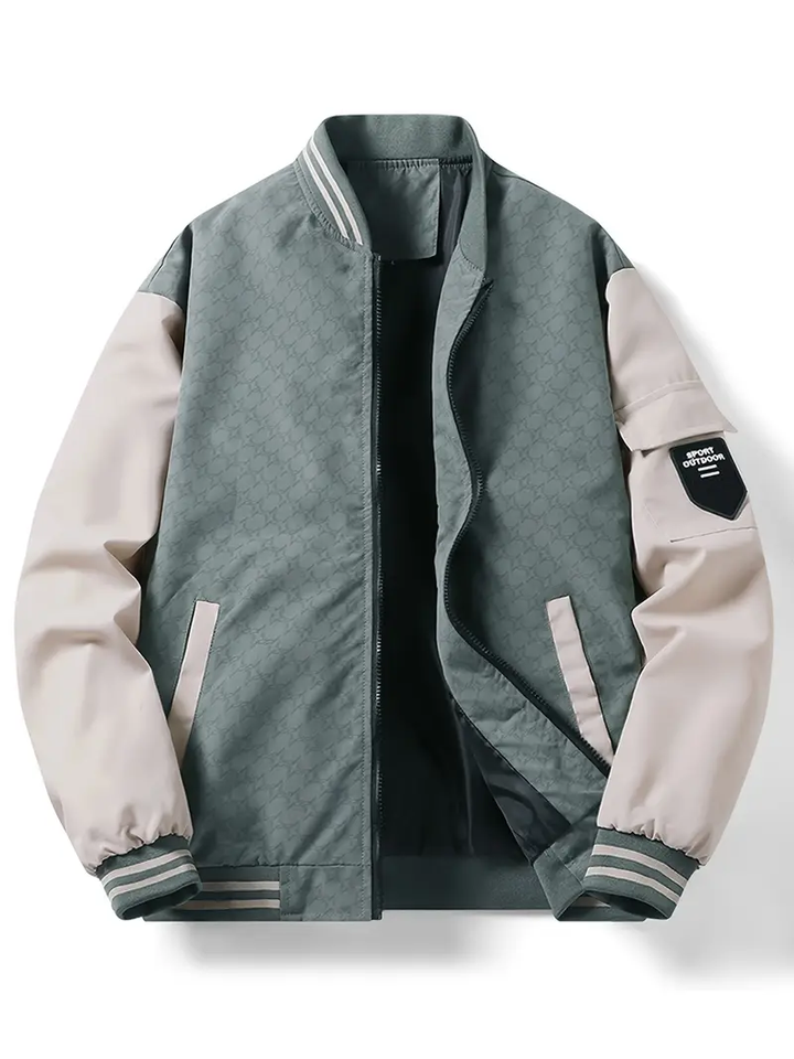Dropshipping Chaqueta de bombardero con múltiples bolsillos de bloque de color para hombre, chaqueta informal con cremallera y cuello levantado para primavera y otoño
