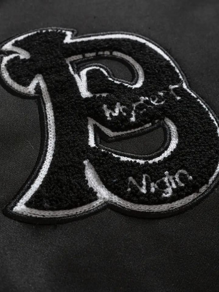 Dropshipping Chaqueta de béisbol con letras bordadas de moda para hombre-Patchwork negro y gris con mangas rotadoras Moda de Otoño/Invierno
