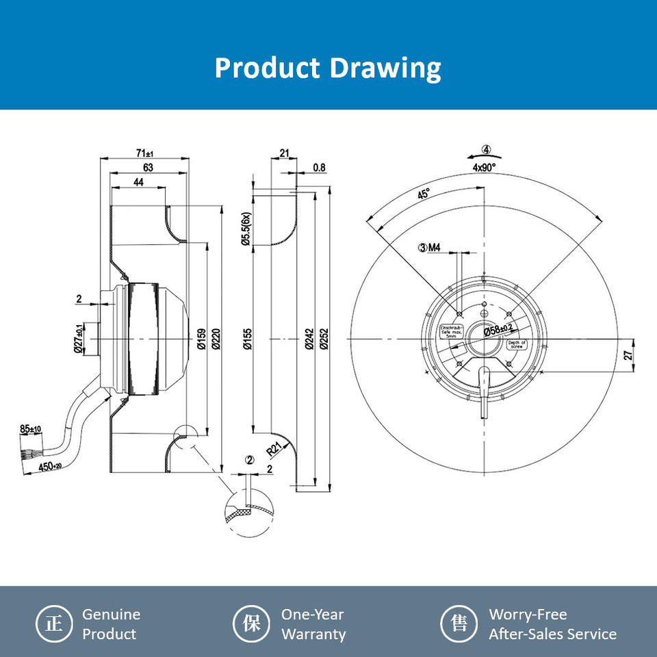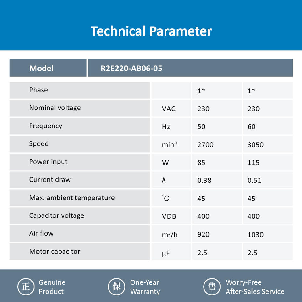 Ventilador Centrífugo Industrial de Curva Inversa ebm-papst R2E220-AB06-05 230V 220mm AC para Ventilación HVAC